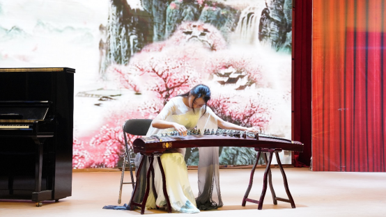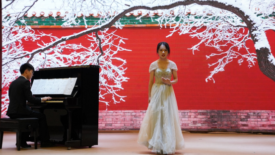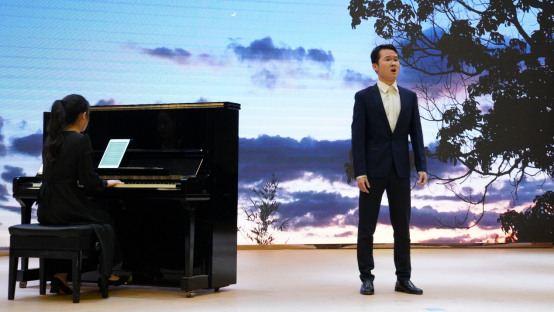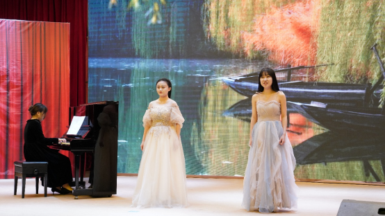 周晓萱同学带来抒情动听的女声独唱《松花江上》拉开了音乐会的帷幕。梁雯婷同学带来的《二月》,琴声优美动人,将曲目的意境淋漓尽致的展现了出来。而周小漩同学带来的古筝独奏《溟山》描绘出了一座幽远而神秘的大山,并且将大山之中一年四季种种多彩的变化表现在了琴声里。钟欢同学带来的独唱《梨花颂》,用优美的声线唱出了歌曲中无法言说的伤痛。罗瀚同学演唱的《桐泪滴中秋》,层层递进的演唱给观众带来了不一样的情感体验。由钟俊康同学演奏的《致艾米丽的圆舞曲》展现了圆舞曲与萨克斯交融的轻快旋律,将气氛推向了高潮。最后由刘欣羽、孙诗恩同学带来的女声二重唱《越人歌》,唱出了越人对子皙的那种深沉真挚的爱恋之情深情感人。