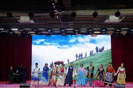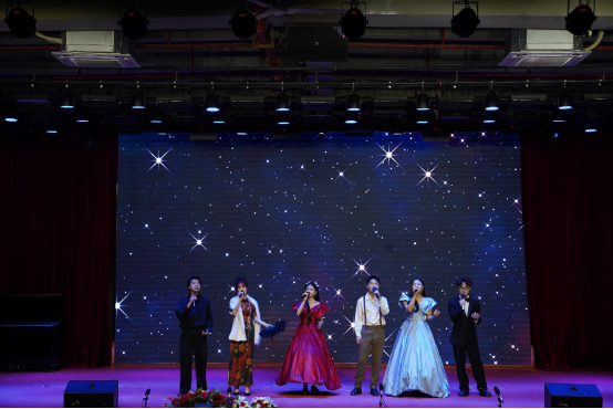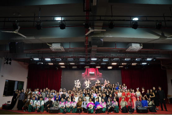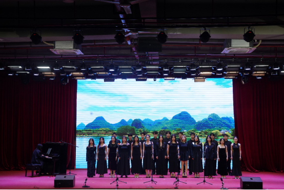 音乐会以一首青春洋溢的《海芋恋》拉开序幕,瞬间将观众带入了一个充满爱与希望的音乐世界。器乐合奏《一步之遥》,旋律中既有爵士乐的优雅又不乏探戈的热情,展现了音乐跨越风格界限的无限魅力。歌剧选段《大豆白米花生》以欢快的节奏和贴近生活的歌词,展现了音乐与生活紧密相连的温馨画面。男女小组唱《我的情歌》则以深情的歌词和动人的旋律,让每一位听众都感受到了爱情的美好与纯真。古筝重奏、 女生小组唱《映山红主题随想曲》以其独特的音色和深情的演绎,将观众带回了那个激情燃烧的岁月。音乐剧选段《雪狼湖》以其深情的歌词与动人的旋律,再次唤起了观众对美好爱情的向往。充满地域特色的原创舞台剧《客家人》是本场音乐会的亮点之一,同学们通过音乐与表演讲述了客家文化的独特魅力与客家人的坚韧不拔。器乐重奏《My heart will go on》《妹娃要过河》《若思念便思念》《往日时光》等节目同样精彩纷呈,各具特色。歌剧选段《伯爵,为何你如此诧异》这首经典作品的精彩演绎将音乐会推向高潮。重唱《敕勒歌》旋律优美动听,歌颂了北国草原壮丽丰饶的风光。合唱《无名的人》以其励志的歌词和动人的旋律,激励着每一位观众勇敢追梦,为音乐会画上了圆满的句号。