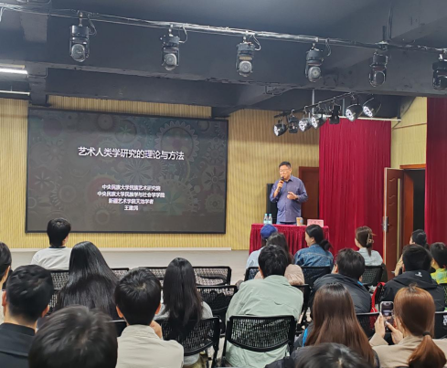 本场讲座的内容丰富深刻,王教授的授课风格幽默生动,在讲授艺术人类学这个复杂的学科体系时,他首先从何为“艺术与艺术人类学”的学理讨论开始与大家进行互动,他指出:“艺术人类学是运用人类学理论和方法,以艺术家和艺术实践者思考、表达和行动为核心,对人类社会不同文化群体中的艺术现象、艺术活动、艺术作品进行研究、分析和阐释的一个具有一定特殊性的研究领域。”他强调不同学术立场对艺术人类学有不同理解,但核心和主要目标是通过艺术人类学研究,对文化艺术“常识”进行反思,提升学术敏锐性,深化人们对艺术的认识和理解,提升艺术实践的学术思考和社会文化意识。