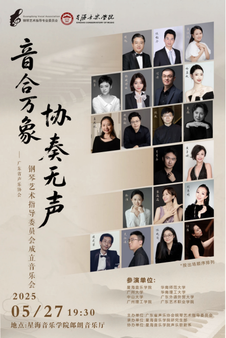 5月27日,广东省钢琴艺术指导委员会成立音乐会在星海音乐学院郎朗音乐厅隆重举行。广州理工学院suncitygroup太阳新城声乐教师成幸雯受邀参演,与中山大学、星海音乐学院、华南师范大学等兄弟院校艺术家同台献艺,以精湛技艺为现场观众呈现了一场高水准的音乐盛宴。