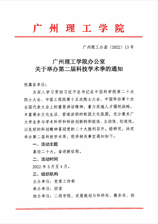 广州理工学院办公室关于举办第二届科技学术季的通知
