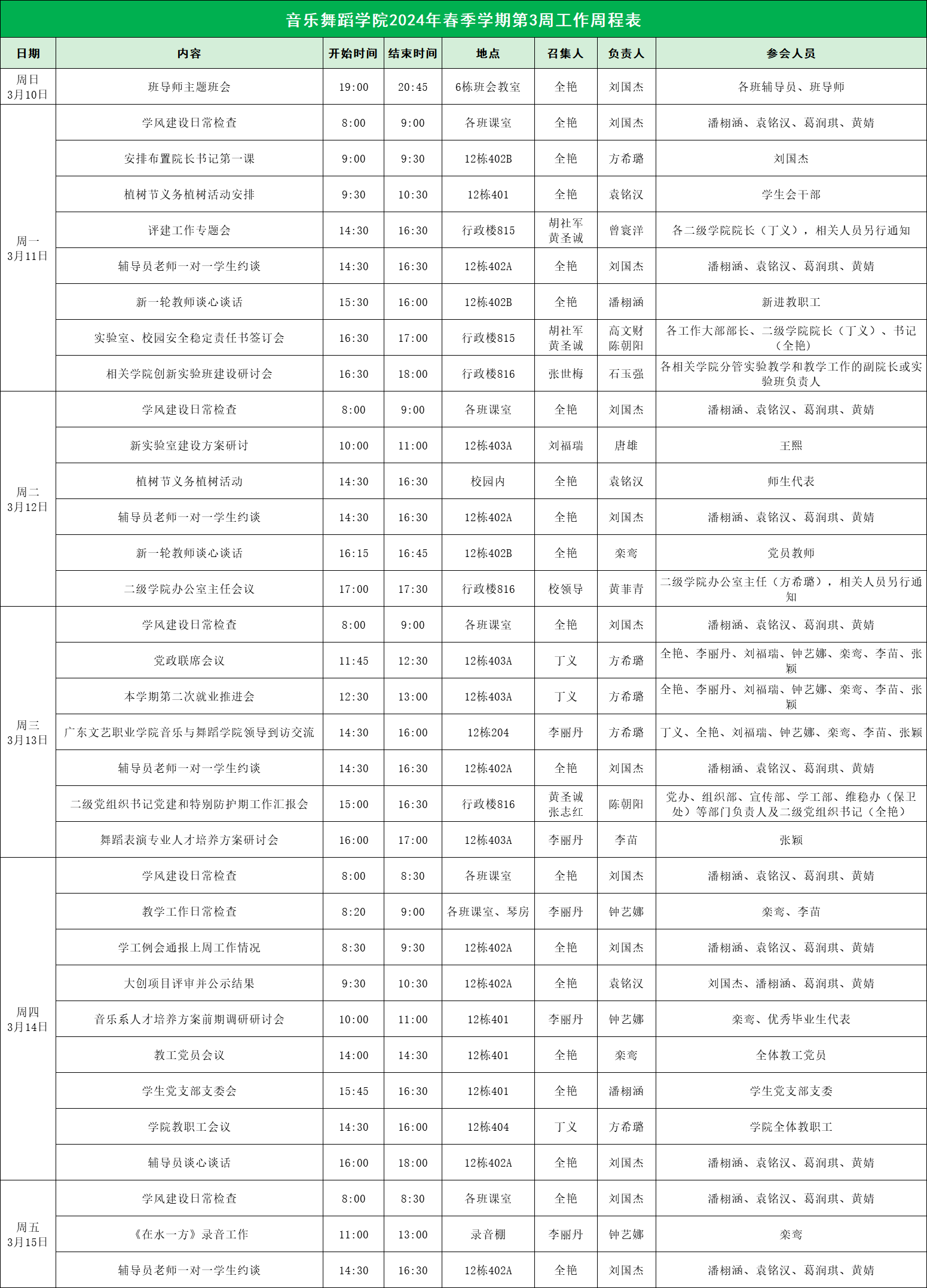 suncitygroup太阳新城2024年春季学期第3周工作周程表