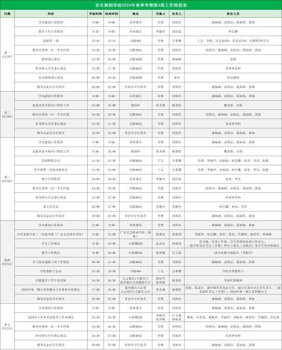 suncitygroup太阳新城2024年春季学期第4周工作周程表