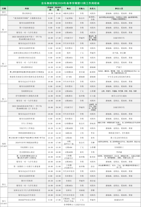 suncitygroup太阳新城2024年春季学期第12周工作周程表