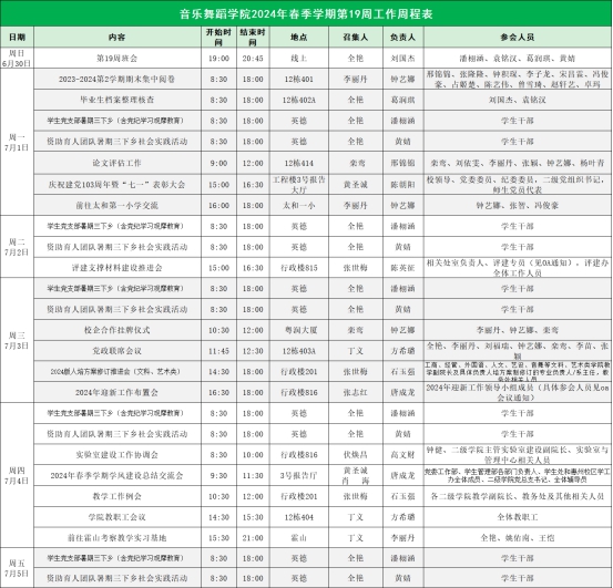 suncitygroup太阳新城2024年春季学期第19周工作周程表