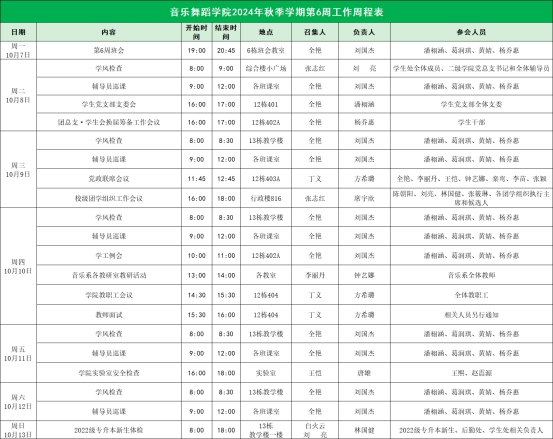 suncitygroup太阳新城2024年秋季学期第6周工作周程表
