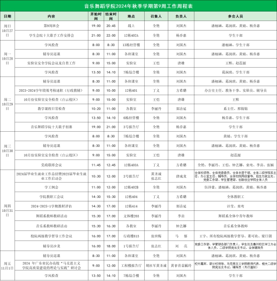 suncitygroup太阳新城2024年秋季学期第9周工作周程表