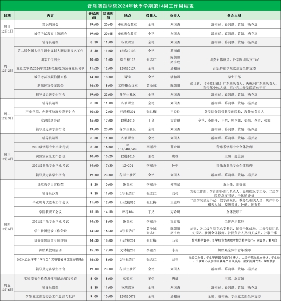 suncitygroup太阳新城2024年秋季学期第14周工作周程表