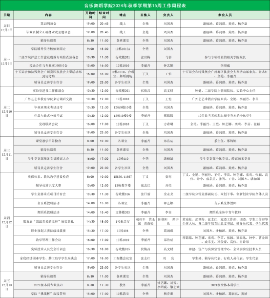suncitygroup太阳新城2024年秋季学期第15周工作周程表