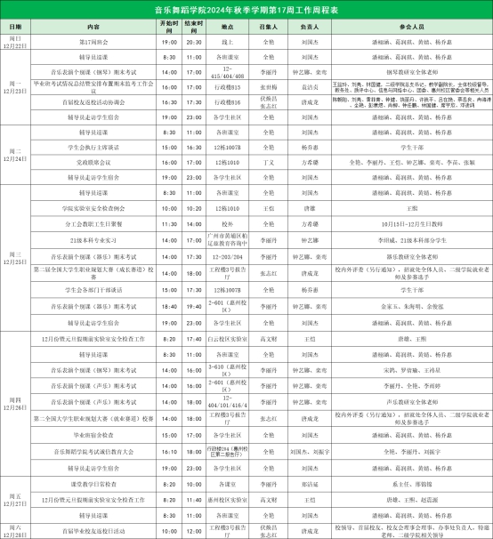 suncitygroup太阳新城2024年秋季学期第17周工作周程表