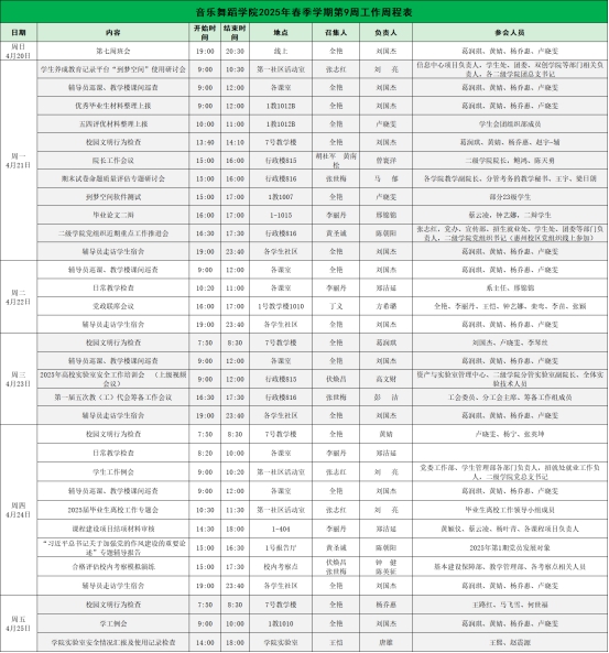 suncitygroup太阳新城2025年春季学期第9周工作周程表
