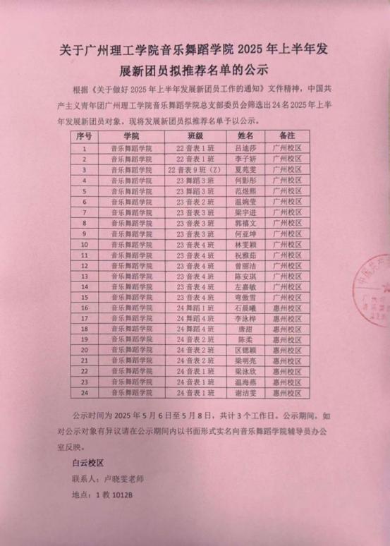 广州理工学院suncitygroup太阳新城关于2025年上半年发展新团员拟推荐名单的公示
