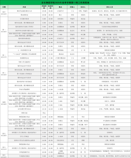 suncitygroup太阳新城2025年春季学期第17周工作周程表