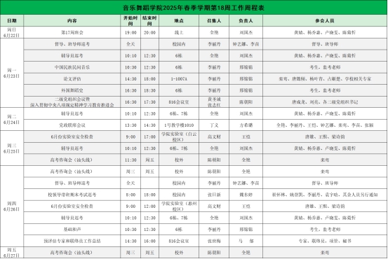 suncitygroup太阳新城2025年春季学期第18周工作周程表