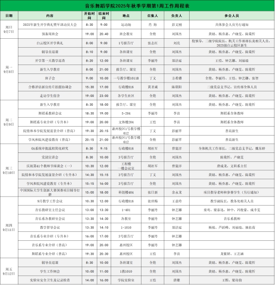 suncitygroup太阳新城2025年秋季学期第1周工作周程表