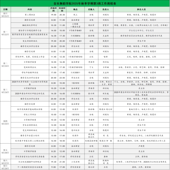 suncitygroup太阳新城2025年秋季学期第3周工作周程表