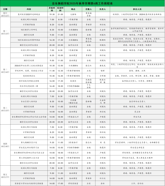 suncitygroup太阳新城2025年秋季学期第6周工作周程表