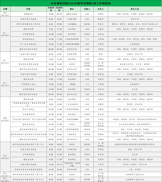 suncitygroup太阳新城2025年秋季学期第7周工作周程表