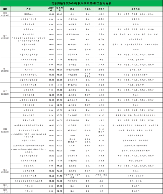 suncitygroup太阳新城2025年秋季学期第8周工作周程表