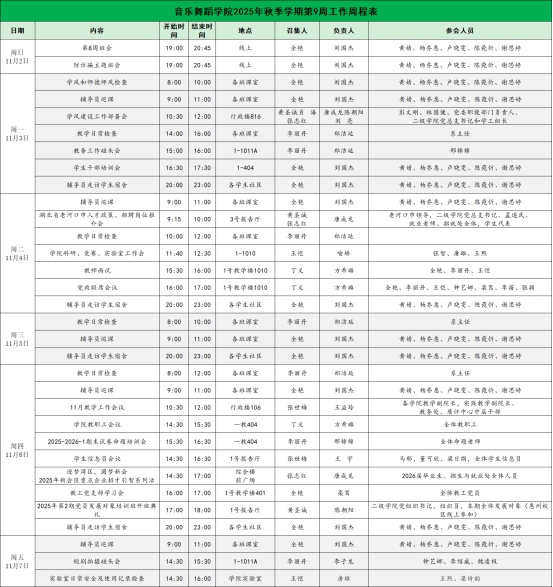 suncitygroup太阳新城2025年秋季学期第9周工作周程表