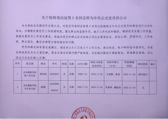 关于拟将郑洁延等5名同志转为中共正式党员的公示