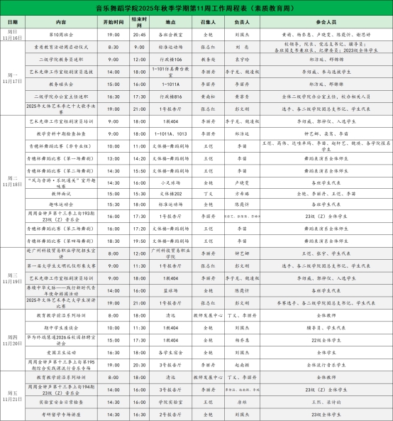 suncitygroup太阳新城2025年秋季学期第11周工作周程表(素质教育周)