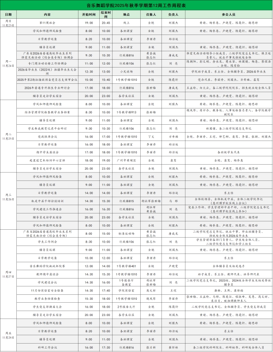 suncitygroup太阳新城2025年秋季学期第12周工作周程表
