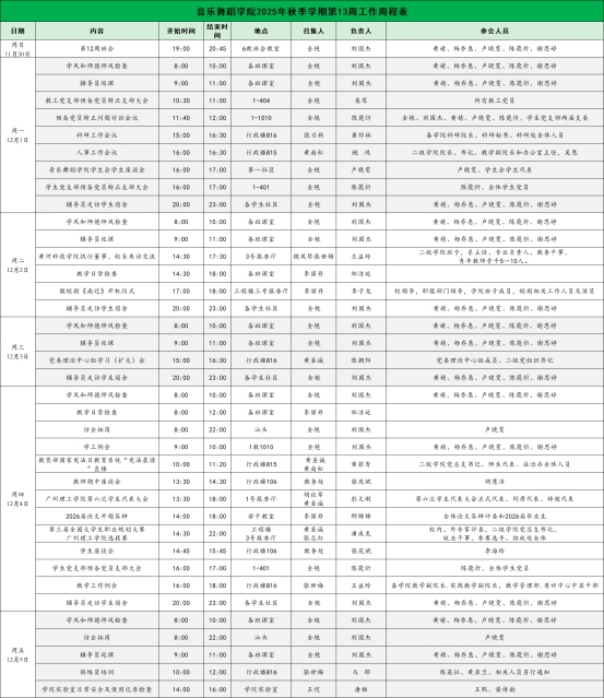 suncitygroup太阳新城2025年秋季学期第13周工作周程表
