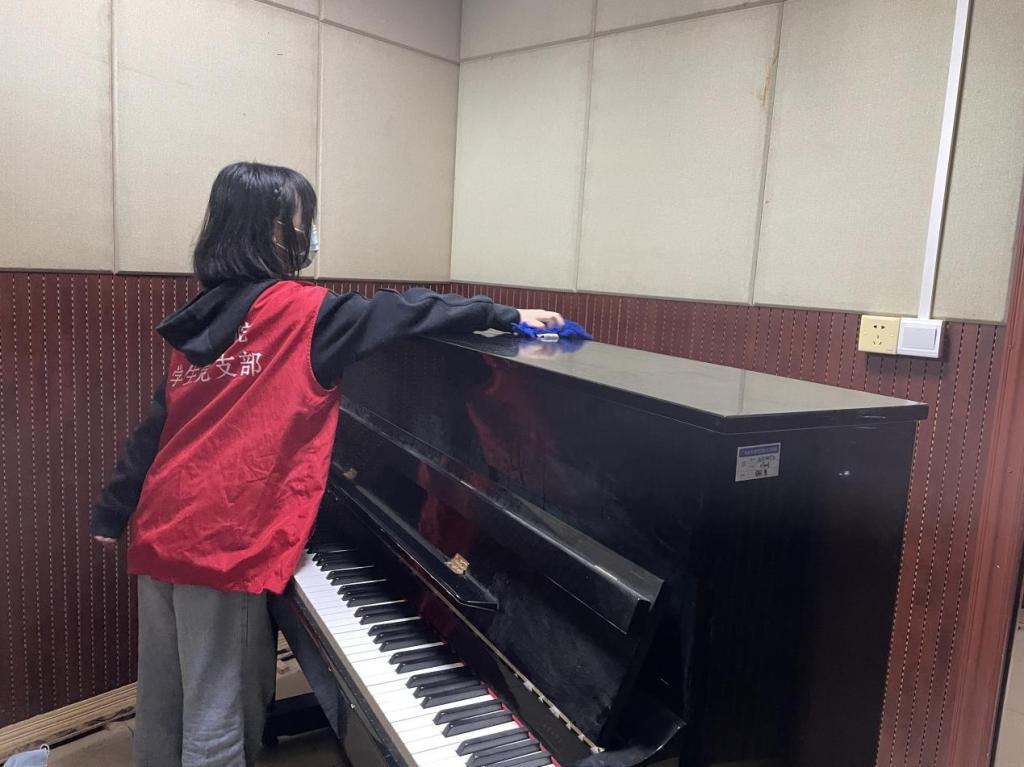 活动旨在让同学们参与到基层劳动中,建设良好的学习环境。学生党支部支委赵晋同志带领党员、预备党员、发展对象及部分积极分子,对琴房进行了认真的打扫,营造了良好的学习环境。从他们身上我们可以看到不畏艰辛、不怕苦不怕脏的劳动精神。