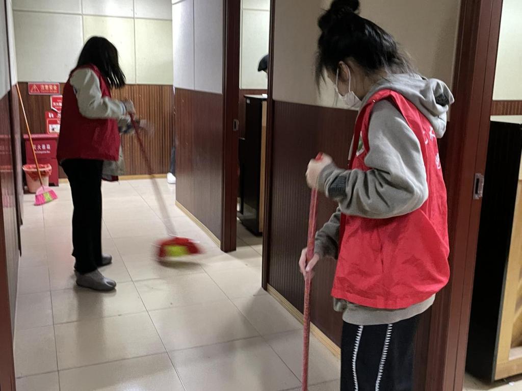 同学们认真打扫卫生