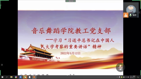 5月12日晚上,为了贯彻落实习近平总书记在中国人民大学考察时的重要讲话精神,suncitygroup太阳新城教工党支部召开线上专题学习会。本次会议由喻娇书记主持。