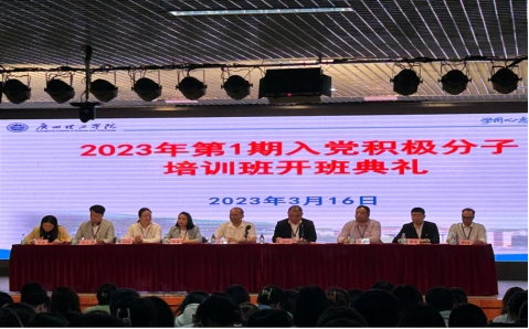 2023年3月16日下午,为进一步加强对入党积极分子的培养、教育和考察,切实提高入党积极分子的政治素质和理论修养,广州理工学院2023年第一期入党积极分子培训班开班典礼在六栋报告大厅举行。校党委领导、二级学院党总支书记以及本期入党积极分子学员参加这次开班仪式。suncitygroup太阳新城15名入党积极分子代表参加本次会议。