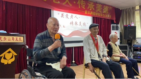 最后,龙头山寿星院岑一珉院长讲话,表示对党员志愿者此次慰问的感谢,希望志愿者们继续保持初心,发光法热,贡献自己的力量,服务人民与社会。