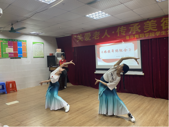 带领老人到表演室