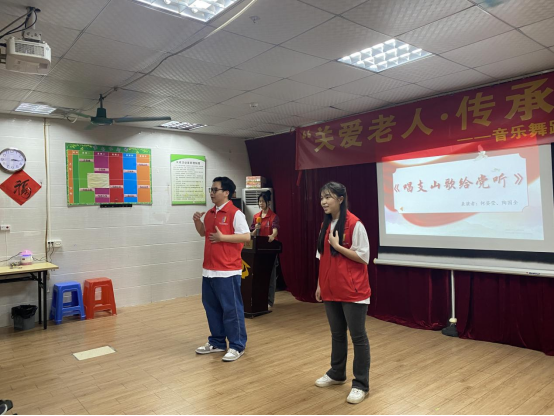 紧接着,党员志愿者为老人们开展了精彩的文艺演出,一首《清粼粼的水来蓝盈盈的天》拉开了活动的序幕。当表演到《唱支山歌给党听》等经典曲目时,爷爷奶奶们开心地拍手跟唱起来,美妙绝伦的音乐勾起了爷爷奶奶们的回忆。等到了看图猜成语游戏环节,爷爷奶奶们积极举手参与其中,大家都玩得不亦乐乎。整场演出让养老院的老人们感受到了大家的热情与青春的活力,给老人们的生活增添了一抹温暖的色彩。演出中间,党员志愿者们通过游戏互动,为老人们送上慰问品,这也让整个活动都沉浸在温馨愉悦的氛围中。