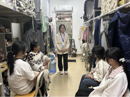 志愿者们进行宿舍巡查