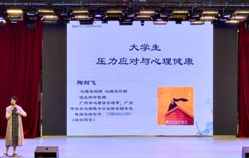 陶剑飞教授通过心理健康教育科普,帮助学生们打开新的视野,更好地理解和应对日常生活中遇到的心理问题。演讲过程中,陶教授用“乌龟与乌鸦”的游戏跟学生进行互动,并且对学生的压力来源进行分类和分析原因,帮助学生更好解决各类心理挑战。让现场的每一位学生学会合理面对压力,健康全面的发展,从一个客观的角度对自己的压力进行更深层次的认识。