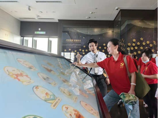 展馆讲解员为我院支部党员进行展品的讲解