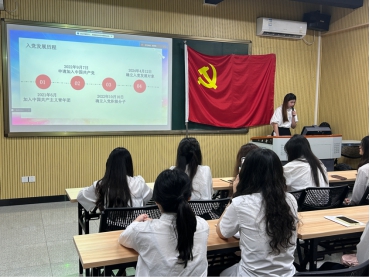 学生党支部书记潘栩涵代表支委会报告党员发展对象的审查情况