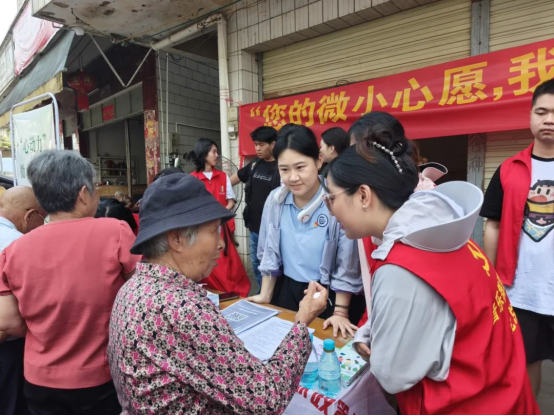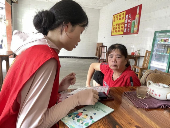 上午9点,资助团队在当地政府的带领下来到了集市。待工作人员布置好摊位后吸引了许多村民驻足。不少村民前来咨询相关资助政策,队员们为他们详细解读资助政策,让他们了解国家资助政策的优势,鼓励有需要的学生和家长积极申请资助。本次摆摊有利于推动国家资助政策家喻户晓、深入人心。在黄老师带领下,部分队员走进集市、拜访商铺。资助队伍来到了一家电器商店,与商店老板亲切交谈。在交谈中我们了解到她的孩子刚完成大学志愿的填报,并且有去参军的意愿,黄老师便为她发放《广东省学生资助政策简介》手册,详细介绍《高校学生应征入伍服兵役学费补偿和国家助学贷款代偿及退役复学后学费减免》的具体内容,包括申请条件、申请流程、还款事项等。商店老板表示之前并没有了解过国家资助政策,通过本次活动后清楚地了解了有关政策,并对资助队表达了感谢。资助小队的队员们还来到了王阿姨店中,在交谈过程中,我们了解到她的女儿是一名大学生,成绩优秀,获得过“励志奖学金”。对于国家资助政策,她表示非常认同,她认为国家资助政策可以鼓励她女儿更加努力地学习。通过本次交谈可以看出国家资助政策能引导青年学子树立远大志向、筑牢理想信念,点燃希望的火种。