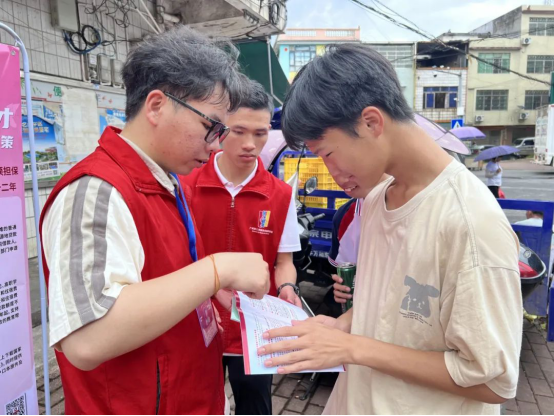 (钟乐娴)为了更好地宣传国家资助政策,广州理工学院suncitygroup太阳新城的“励志笃行·助学筑梦”资助团队于2024年7月3日在英德市西牛镇桥底开展集市现场宣讲活动,团队借此机会为更多需要了解政策的村民进行宣讲。本次宣讲活动由黄婧老师带领。