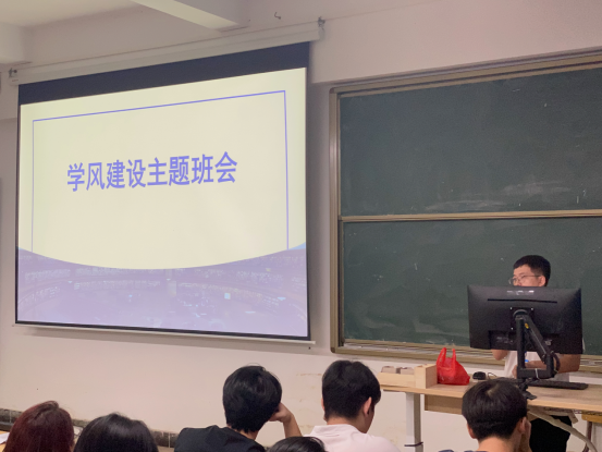 主题班会上,辅导员就我院学生的日常行为案例谈起,指出学院学风的必要性和重要性,明确学院学风建设近期目标和长远目标,并提出学风建设的具体方法和路径,引导学生成长为“有理想、有道德、有文化、有纪律”的时代青年。辅导员继续指出,学风建设需要班级同学的共同努力,优良学风建立在优良班风的基础之上,班级同学应该秉持尊重、信任、理解、团结的原则,共同打造文明班风。针对班级中出现的几种不良风气和学习态度,辅导员进行分析总结,让学生明确意识到问题的根源,在今后的学习中改进。辅导员继续将学风细化到舍风,指出寝室人际关系是大学生人际关系中最普遍、最直接、最重要的一种人际关系,创建和谐宿舍需要摆正心态,完善自己的个性品质,培养良好的行为习惯。班会最后,辅导员与在场学生讨论了“角色与责任”“自律与自由”“个人与集体”三个问题,引导学生进一步以实际行动建设学院优秀学风。