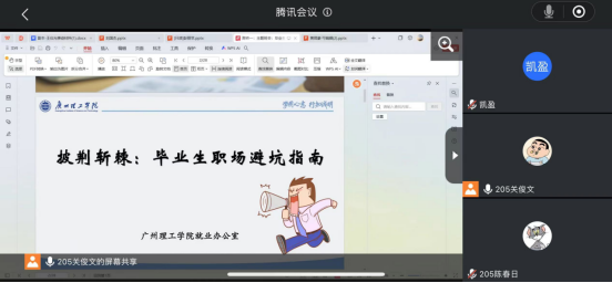 为更好地开展毕业生就业工作,提高学生的自我防范意识,引导学生正确求职就业,保障学生安全稳定工作,suncitygroup太阳新城于4月6日组织召开毕业生预防就业陷阱线上主题班会。