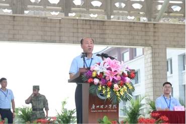9月11日上午,典礼在雄壮的国歌声中拉开帷幕。全体师生面向国旗庄严肃立,国旗护卫队迎着朝阳将五星红旗冉冉升起。胡社军校长寄语新同学,要与学校“同频共振”,明确人生目标;要与学问“一生相守”,奠基壮丽人生;要与大湾区“双向奔赴”,立志服务国家社会,勉励同学们牢记习近平总书记嘱托,秉承“学用心志,行知诚明”的校训精神,把自己的宏伟抱负、家长的殷切期望、学校的精心培育紧密结合起来,在建设粤港澳大湾区、推进中国式现代化的历史机遇中跑出时代风采,成就壮丽人生。开学典礼结束后,学校继续召开新生军训动员大会,学校党委书记黄圣诚,副校长肖海,党委副书记、副校长张志红出席。军训团主要成员、相关机关干部、二级学院军训负责人参加,党委书记黄圣诚为军训团授旗,副校长肖海宣读《关于成立2024级新生军训团的决定》;党委副书记、副校长张志红作军训动员讲话,要求学生提高认识,听从指挥;不怕吃苦,力争上游;互帮互助,共创荣光。广州理工学院2024级新生开学典礼暨军训动员大会在美好的憧憬中开始,在热烈的掌声中圆满结束。