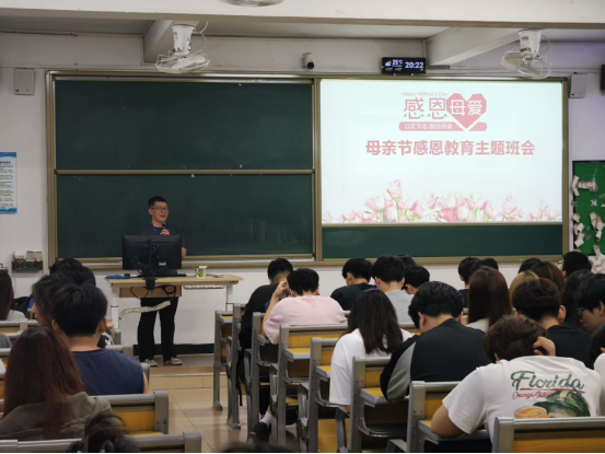 班会上,辅导员老师详细介绍了母亲节的由来和意义,邀请同学分享描写和歌颂伟大母爱的诗词,讲述母爱有关的生命的故事,引导学生进一步认识母爱的伟大。在班级讨论环节,辅导员老师通过“有没有给妈妈做过饭”“你了解你的父母吗”两个问题引导学生进一步思考个人在与父母相处过程中的点点滴滴,认识到自己在感恩父母的不足。最后,辅导员老师组织班级手写母亲节贺卡,传递对母爱的感恩。