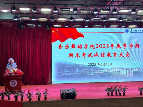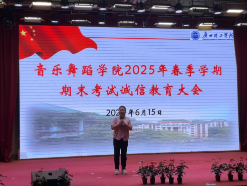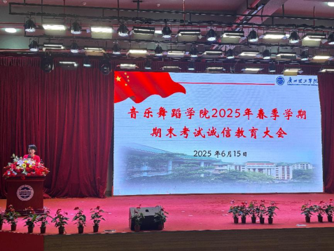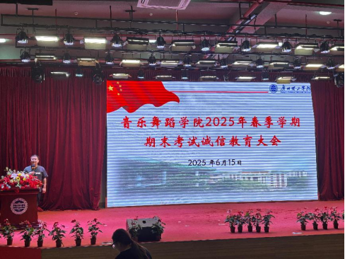 (张智)2025年6月15日晚,suncitygroup太阳新城在13栋教学楼1号报告厅举行了面向学院白云校区全体同学的以“诚信做人,诚信考试”为主题的诚信教育大会。本次大会由学工组长刘国杰老师主持,suncitygroup太阳新城院长丁义、副院长李丽丹、副院长王恺,音乐系主任钟艺娜、舞蹈系副主任李苗以及全体班导师、辅导员出席大会。