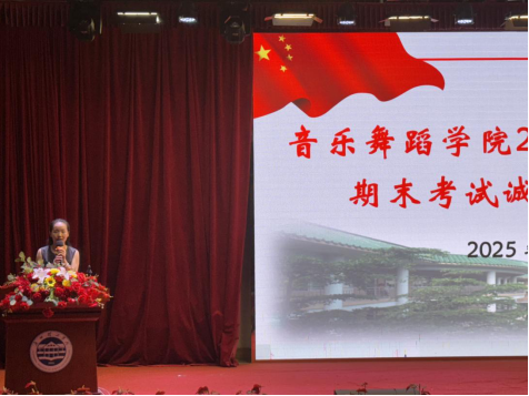 大会最后,丁义院长总结讲话,他重申诚信作为中华民族传统美德的重要性,指出“考试是检验学习成果的手段,更是衡量人格的标尺”,艺术追求更应以诚信为根基。院长强调了四点内容:一是诚信考试的核心意义;二是严格遵守考场纪律;三是明确违纪作弊行为的认定标准;四是重申学校对作弊“零容忍”的严肃处理政策。丁院长向全体同学发出倡议,要求树立正确的考试观,严守考风考纪,将诚信融入日常生活,以真实的成绩和态度展现学院学子的专业素养与高尚品格。