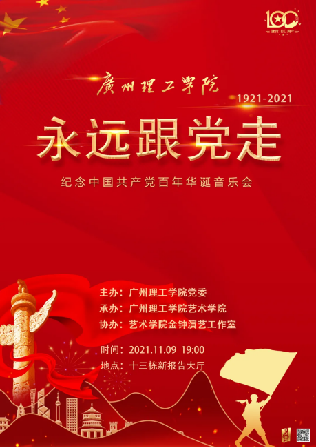 suncitygroup太阳新城“永远跟党走”庆祝中国共产党100周年华诞音乐会将以“党的生日、人民的节日、伟大的成就”为基调定位,用铿锵有力的歌声为建党百年献礼,彰显广州理工青年学子新风采,让青年学子在身临其境的演绎中赓续红色血脉、担当时代责任。