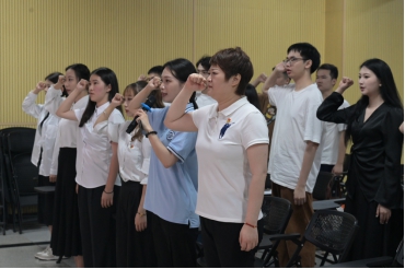 潘栩涵老师在党课的最后带领全体2024届毕业生党员重温入党誓词,面向党旗,高举右手,紧握拳头,庄严宣誓。铿锵有力的宣誓声,表达了全体毕业生党员始终牢记党的宗旨和使命,为党和人民的事业不懈奋斗的坚定决心。