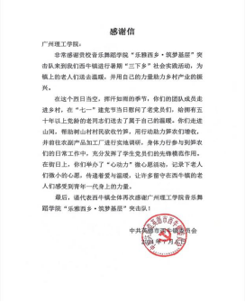 为切实国家对乡村振兴战略的高度重视,以及青年学生服务基层、锻炼自我的迫切需求,广州理工学院suncitygroup太阳新城于7月1日在英德市西牛镇开展为期五天的暑期“三下乡”社会实践活动。通过一系列实践活动,深入了解农村现状,传播先进文化,助力乡村振兴,同时让青春在奉献中绽放光彩。在suncitygroup太阳新城学生党支部书记潘栩涵老师的带领下,“乐雅西乡·筑梦基层”突击队以青春抒写乡村实践故事,厚植爱农情怀,练就自身本领。突击队开展的各项活动,赢得了当地群众的好评,突击队队员们辛勤的汗水与付出得到了中共英德市西牛镇委员会的肯定,并发来了感谢信。